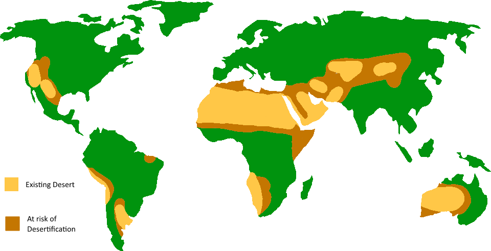 Areas at risk of desertification are mostly inhabited by a rapidly growing, low-income population.