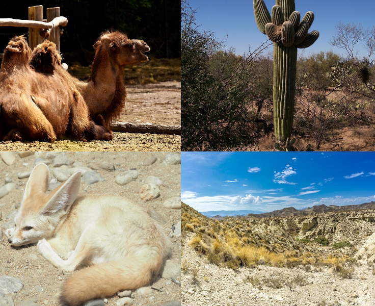 There is interdependence between biotic and abiotic parts of hot deserts: