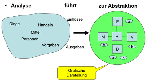 | Analyse heißt ... | das Herleiten der von den Beteiligten benötigten Funktionen eines SW-Produkts, sowie der Bedingungen für deren Entwicklung und dessen Betrieb |