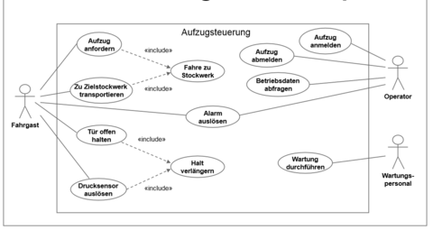 | Skizziere das Use Case-Diagramm Beispiel aus den Vorlesungsunterlagen | |
