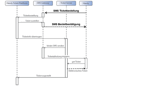 | Gebe das beispielhafte UML Sequenzdiagramm aus den Vorlesungsunterlagen für eine E-Ticketbestellung wieder | |