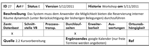 | Gebe die Skizze zum Anforderungsworkshop wieder | |
