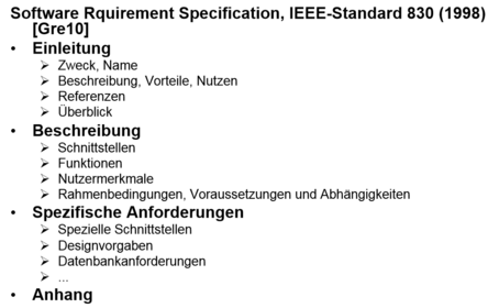 | Nenne die Teile der Anforderungen | 1. Machbarkeitsstudie 2. Anforderung 3. Stakeholder 4. Anforderungsquellen |