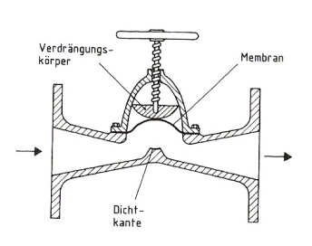 • Besonders geeignet für aggressive Medien und hygienische Anwendungen • Abdichtung durch Drücken der Membran auf die Dichtkante • Keine Strömungsrichtung vorgegeben • Mittlere Drücke und Temperaturen • Unempfindlich vs. leichte Verunreinigungen |