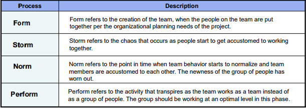 | The team development process includes Form, Storm, Norm, Perform. Please describe these Steps in Your own words. |